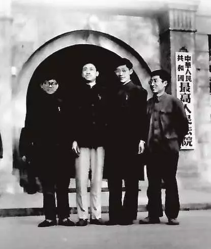 图为最高人民法院第一批大学生初到北京,从左至右依次为孙世光 闫承铸 刘天弼 龙斯荣。