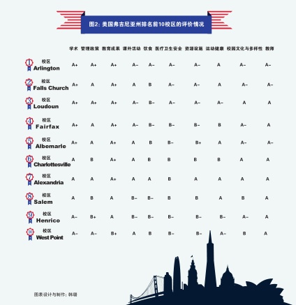 虽然美国极具独立性的学区制使得各个学区呈现出迥异的教育特色,但毕竟教育的本质与根本目的是一致的或者相似的,因而就会有对不同学区教育状况的评价与排名。因此,美国NICHE网站每年都会根据若干参考依据对全美各州学区进行较为全面的综合评估与排名。这些参考依据包括州考试成绩、就读大学准备指数(collegereadiness index)、毕业率、学术检测成绩、学校管理与政策、医疗卫生、运动与健康、校园文化、教师质量等因素或者指标(以美国弗吉尼亚州排名前10的校区为例,参见图2),而这些因素或者指标通常是依据统计数据或者对学生与家长的访谈以及专家的观察和评价而获得的。 在上列每项指标之下,还有更为详细的划分。以在弗吉尼亚州排名第一的阿灵顿县学区为例,在学术方面,包括平均毕业率(84%)、平均退学率(2.7%)、师生比(1:12)以及精通数学和阅读的百分比(80%)等;在学生构成方面,包括男女比例(13:12)、学生的多样性(包括白人、西班牙裔、非裔、亚裔、多族裔、美洲原住民、太平洋岛屿原住民等);在教育成果方面,包括学术测试(SAT)平均成绩(1830分,全美平均分为1700分)、大学入学考试(ACT)平均成绩(29分,全美平均分为26分)、专业选择、大学选择等。由此可见,尽管学区制的设置与运作鼓励了以学校为中心的个性化特色教育,但由于基础教育的性质、地位及目的,因而在具有多元化发展趋势的同时,不同的校区之间仍然能够保持大体相同的基本教育理念与目标。 在美国公立教育理念中,“平等”是至关重要的基本原则之一。为此,作为一个庞大的权利群体,学生常以在学校受到“不平等”的或者“歧视”待遇而将学区告上法庭。例如,在加利福尼亚州,有一名从女性变成男性的学生,因学校要求其在护士办公室的洗手间更换运动服,而错过许多与同学交流的机会,甚至有时受到同学的嘲笑。另外,还发生了许多类似事件。2011年10月10日,全美女同性恋权利中心(NCLR)代表该学生,向美国教育部民权办公室和司法部民权司投诉,声称阿卡迪亚联合学区(Arcadia Unified School District)的行为违反了《教育法第九修正案》,构成对该名学生的性别歧视。2013年7月24日,教育部民权办公室和司法部民权司宣布纠纷解决方案,要求阿卡迪亚联合学区将该名学生视同男性,停止任何不同于其他男同学的特殊对待;此外,该学区还要修改政策,规定变性的和性别表现不一致的学生有权平等参与学校的各项活动、使用学校的各种设施。同时,在美国的基础教育实践中,学生非常强调和注重自身“权利”的法律保护,因而时常将“权利”保护的锋芒指向作为法律主体的各个学区。例如,在萨福德联合学区诉雷丁案(Safford Unified School District v.Redding)中,萨瓦娜·雷丁(SavanaRedding)是亚利桑那州萨福德中学的一名8年级学生,有学生打小报告说她可能违反学校规定私自携带布洛芬(ibuprofen),于是,学校官员对她实施了裸体搜查。因而,雷丁向亚利桑那州地区法院起诉学区以及负责搜查的学校官员,声称被告侵犯了《宪法第四修正案》赋予自己的不受无理搜查和扣押的权利。地区法院不予受理,驳回了原告的诉讼请求。在上诉审判中,联邦第九巡回上诉法院判决,美国《宪法第四修正案》赋予雷丁不受无理搜查和扣押的权利遭到了侵犯。经过再次上诉,2009年6月25日,美国联邦最高法院作出判决,学校官员搜查雷丁的内衣,侵犯了美国《宪法第四修正案》赋予她的权利,但涉案的学校管理者无需承担个人责任,因为“已经明确制定的法律并没有表明这样的搜查违反了《宪法第四修正案》”。 不难看出,在美国基础教育中,学区制发挥了无可替代的重要作用。一方面,学区作为独立自主的教育机构或者系统,可以充分行使法律赋予的自主教育权,推动基础教育的全面健康发展;另一方面,学区作为担负教育职责和义务的法律主体,也要受到学生基本权利的限制与平衡。教育,不仅是社会文明的智识基础,更是国家强盛的智力保障。人类的经验证明,只有依靠合理的制度建设与权威的司法维系,才有可能创造出健康的社会环境,也才有可能孕育出真正的教育及其成果。