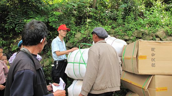 图四、会泽法院干警帮助灾民搭建帐篷 纸厂乡是“8.03”地震中会泽受灾最严重的乡镇,灾情发生后,为保证科学救灾、顺利救灾,当地实行交通管制,禁止社会各界盲目无序进入灾区。至8月7日,经多次请示救灾指挥部同意,由副院长邓成耀带队,会泽法院得以派驻第一批5名干警进入纸厂灾区。8月9日,院长段玉波带领法院第二批5名干警进驻纸厂灾区。法院干警积极投入一线救灾,主要负责纸厂乡鄢家村水平、小竹、小箐三个村民小组的查灾核灾、搭建帐篷、物资发放、排查隐患、安全保卫、群众安抚、应急保障等任务。纸厂乡鄢家村水平、小竹、小箐三个村民小组受灾严重,房屋倒塌2户6间,严重受损209户。截止8月11日,法院干警帮助纸厂灾民搭建帐篷36顶,走访安抚灾民233户794人,核查灾情233户,排查出安全隐患3处,及时向灾民发放救急包、折叠床、帐篷、大米等物资及194500元救助金。
