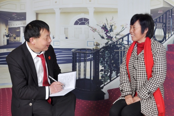 全国两会前夕,我采访了两届全国人大代表、百丈河村党支部书记王金初。 王金初代表很忙,刚参加完英山县第十七届人民代表大会第三次会议闭幕式,马上要到北京开“人代会”,她好不容易抽空在一家普通理发店理发美发。 今年58岁的王支书很健谈,她说:“我是一位普通农民、一个农家主妇,1973年就在村任一般干部,担任村妇女主任、妇幼医生,1990年当选村主任,1992年接任村支书,在党和政府的培养下,有幸两次被选为市人大代表,连续三届被推选省党代表,连续两届当选全国人大代表,每次到武汉、北京开会都感到非常高兴和荣幸,也感到责任重大,决不能辜负党的培养和人民的养育!” 我们谈了很多,着重围绕“倍增人民陪审员计划”,她谈了很多很好的看法—— “早在20多年前,我是县人大代表时,就提倡要多选聘、任命人民陪审员参加审理、执行案件,汇聚审判机关的权威和人民陪审员熟悉风俗、人脉广泛双重优势,较快较好的化解民间纠纷。2013年最高人民法院提出倍增人民陪审员计划要求,力争两年内将全国法院人民陪审员数量增至20万左右,确保基层群众所占比例不低于新增人民陪审员的三分之二,我从电视、报纸听到看到这个消息,感到由衷高兴。 “我认为人民陪审员能发挥“四大员”作用,在基层维护社会稳定,促进群众安居乐业有很大作为:一是宣传员。向广大人民群众宣传法律法规,特别是以案说法,普及法律知识,提高公民素质。二是调解员。依据法律和法律知识,参与审理、执行案件,与法官一起及时化解群众的矛盾纠纷,维护农村安定团结,维护邻里村落和谐。参与审理、调解一案,教育一片,自己和群众都受到很好的教育。三是监督员。全程参与审理、执行案件,监督法官、执行人员公平公正办理案件,给百姓一个明白。四是联络员。人民陪审员生产生活在基层,来自基层,朝夕与群众相处,及时上下联络沟通,及时排查矛盾、发现纠纷,协助法院和有关部门及时化解纠纷,大事化小、小事化了。人民陪审员作用可大呀,好处多着呢! “人民法院倍增人民陪审员计划,很英明,扩大了民主,推进了法治,我们基层群众很欢迎,能够调动更多社会力量调处纠纷,维护一方平安。这次英山县人民法院要扩增三十名左右人民陪审员,我热情报名参加,正等待法院、人大依据法律程序报批、任命。” 王金初代表还饶有兴致地谈了引导农民学法、懂法、用法和依法治村、依法解决矛盾等话题,充分展示了一个村支书开明、智慧、富于远见、充满希望的风采!