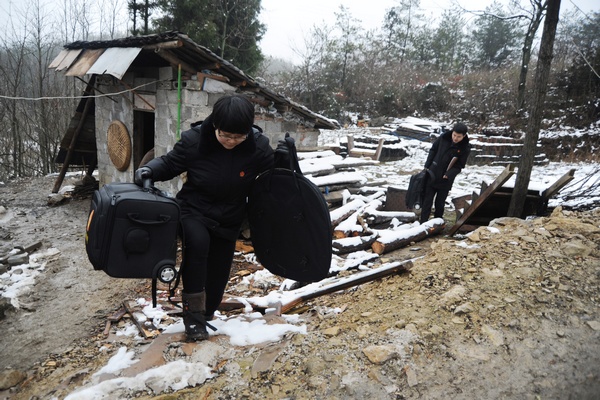 图一、大雪封山,天寒地冻,法官巡回在海拔最高的清水土家族乡岐山村办案。